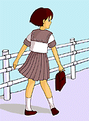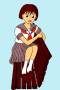 and skirt of Junior high school. The cardigan's color is light yellow,