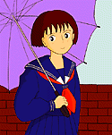 There are a lot of scenes that Shizuku is putting up her umbrella in "Whisper
