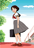This is very beautiful graphic. Shizuku is standing at the pavement on