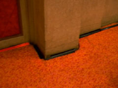 字幕は聴覚が不自由な方向けの設備ですが、同時に難聴の方でも補聴器をつけてセリフが聞こえるよう、館内の客席を取り囲む形で磁気ループが設置されていました。この中に入って補聴器をつければ、あたかもラジオの放送のようにセリフが磁気ループから補聴器へ届けられるとのことです。