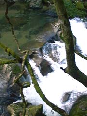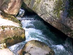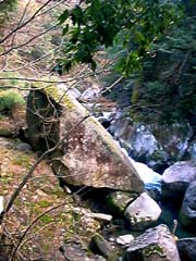 | (T)鬼の舌震 上流部 岩と岩の間から水が勢いよく噴き出して います。 |