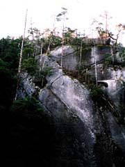 | (X)壁面 水面からすぐ上は見上げるばかり の絶壁になっています。 |