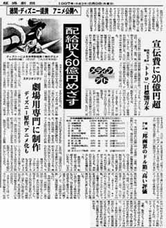Japanese economic newspaper on June 9, 1997 宣伝費に20億円超 「トトロ」目標200万本