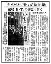 「もののけ姫」が新記録 配収「E・T・」の96億円を抜く