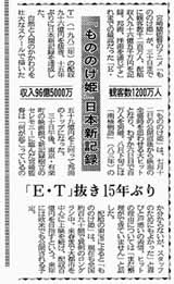 「もののけ姫」トップ 配収で「E・T・」抜く 15年ぶりの日本記録