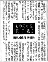 「もののけ姫」「E・T・」抜く 配収96億5000万円