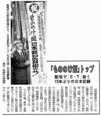 「もののけ姫」日本新記録 「E・T・」抜き15年ぶり