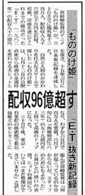 「もののけ姫」配収96億越す 「E・T・」抜き新記録