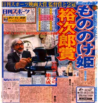 報知新聞 映画賞(特別賞)受賞 史上最大のヒット「もののけ姫」