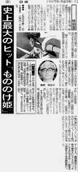 さらに徳間社長は「吹き替え版に字幕を入れて、日本で再公開するつもり」と気炎を上げており、強力な援軍を得た「もののけ姫」ブームは、来年以降も続きそうだ。(当該記事より)