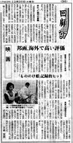 回顧'97 邦画、海外で高い評価 「もののけ姫」記録的ヒット