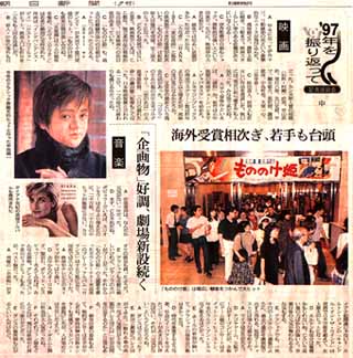 C「うなぎ」「HANA−BI」「東京夜曲」と海外の映画祭で大きな受賞が相次いだ。「もののけ姫」は配給収入百億円を突破、史上最大のヒットになった。
