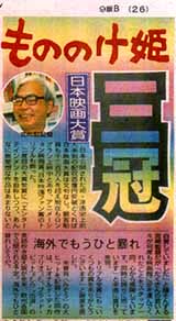 「もののけ姫」日本映画大賞 三冠