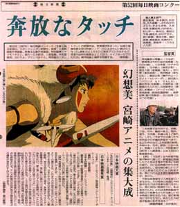 第52回毎日映画コンクール 日本映画大賞に「もののけ姫」 幻想美 宮崎アニメの集大成