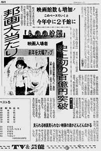 邦画大当たり「もののけ姫」史上初の100億円突破