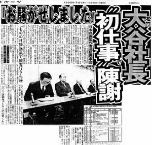 理事会で大谷社長は、緊張した面持ちで居並ぶ松岡会長(63)石田敏彦東宝社長(67)、岡田茂東映会長(73)、高岩淡東映社長(67)、徳間康快徳間グループ社長(76))に、陳謝をかねてあいさつした。