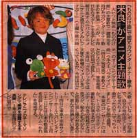 大ヒット映画「もののけ姫」の主題歌で一躍脚光を浴びたカウンターテナー歌手の米良美一(26)が、14日からスタートするテレビ朝日系オムニバスアニメ「アニメ週刊DX!みいファプー」(土曜午後六時半)のオープニングテーマ曲「ウキウキパラダイス」(4月下旬発売)を歌うことになり12日、東京都港区の同局で会見した。
