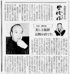 この三月の長野冬季パラリンピックで総合プロデュースをしている久石さんから、支援アルバムのお誘いがあり、「愛の木」という新しいオリジナル曲で私も参加させてもらった。久石さんの独特の東欧的な重量感とメルヘンのあるアレンジで素晴らしいレコーディングができたと思う。「生まれたのが長野。すごく音楽が盛んでね、五歳のころからバイオリンをやってました。映画も週に三回とか四回とか見てね。そのころから音楽にあこがれてたんですよ」