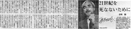97年度も毎日映画コンクールで「日本映画賞」を獲得した「もののけ姫」。表彰式で製作総指揮に当たった徳間康快・徳間書店社長(76)も示唆していたが、次作は二十一世紀をテーマに、環境問題や人口爆発などを絡めた作品になるという。(当該記事より)