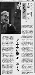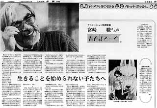 みやざき・はやお 1941年東京生まれ。学習院大卒後、東映動画に入社。その後Aプロなどを経て、85年スタジオジブリの設立に参加。その間「未来少年コナン」「ルパン三世・カリオストロの城」「風の谷のナウシカ」の監督。ジブリでは「天空の城ラピュタ」「となりのトトロ」「魔女の宅急便」「紅の豚」「もののけ姫」などを発表。