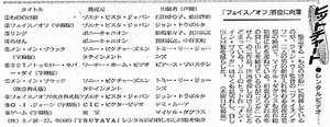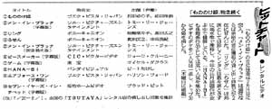 独走する「もののけ姫」に肉薄しているのが、ジョン・ウー監督の「フェイス/オフ」。二人の男の顔が入れ替わる奇抜な発想の映画で、マイケル・ダグラスも制作総指揮に名を連ねている。相変わらず高水準の貸し出しを続けているのが「リング」「らせん」の二作品。洋画を押しのけ上位にとどまっている。ソニーのヒット作「メン・イン・ブラック」は早くも息切れし、貸し出し回数を減らした。