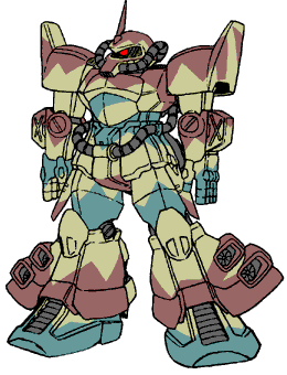 This "dazzle camouflage" is the original color scheme for the MS-07H-4, as published in older Mobile Suit Variation books.