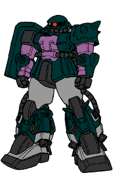 ERIC MANSFIELD COLORSOne of the handful of Zeon pilots fortunate enough to be assigned a Zaku II High Mobility Type was Lieutenant Colonel Eric Mansfield, a member of Zeon's home defense corps. This elite force, reporting directly to Giren Zabi, was usually stationed at Side 3. However, some of its members were transferred to the asteroid fortress A Bao A Qu at the end of the war along with Giren, and records indicate that Mansfield was among them. His Zaku was painted in low-visibility gray.