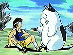 tea and snacking on taiyaki (fish shaped pancakes). He doesn't bother anyone, unless they