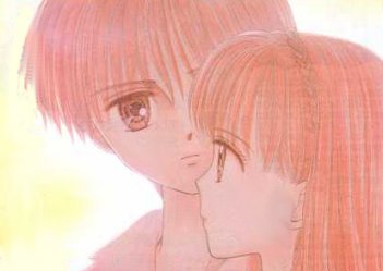 Un disegno di Sana e Akito colorato tutto di rosa