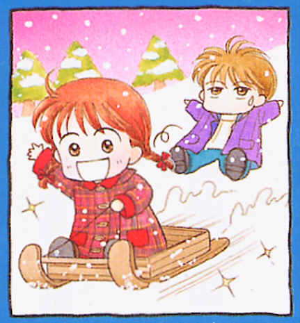 Sana e Akito SD in slitta (Akito e' appena caduto)