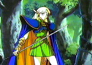 A high Elf from the Forest of No Return, Deedlit's youthful appearance belies her 160 years. Unlike most elves, Deedlit does not believe that Elves and Humans should be segregated and is deeply in love with Parn. She is a skilled fighter who can summon elemental spirits and and has magic powers.