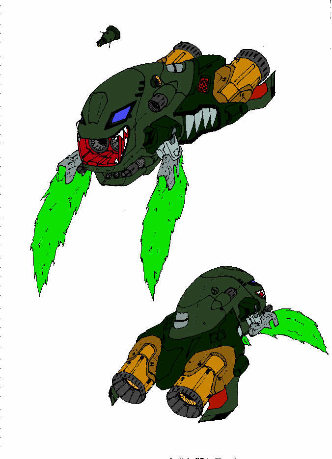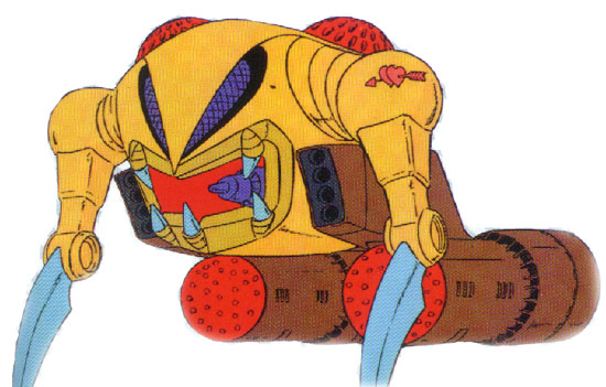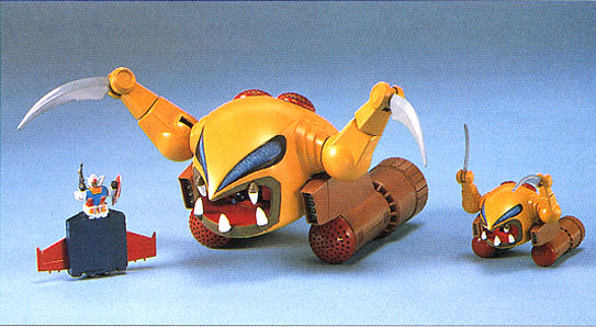 Gundam television series. With its gaping, fang-lined maw, its treacherously