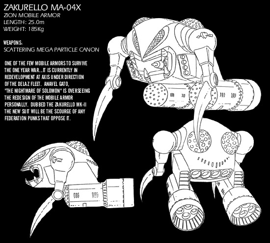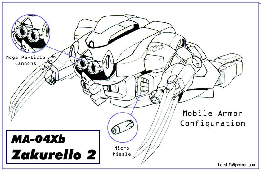 - the MA-04X Zakrello, as featured in the original 1979 Mobile Suit