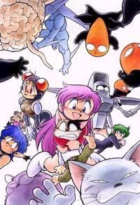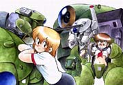 In addition to Space Family Carl Vinson, a Shonen Captain Magazine serial which was popular for its individualized characters and unique brand of humor, we also have plenty of illustrations from other great Asari productions, including Manga Science and Mid-air Knowledge Defense Force, all handpicked, all high-quality reproductions. We also have Asari's character designs from Talking Parodius and Neon Genesis Evangelion, among other works. More than 170 graphics in all in this section.