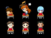 ![]() Rei as quick-change artist. You'll get to see her in a variety of fashions. Shinji and Asuka do something similar. |