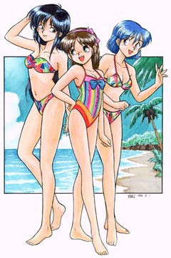 A character illustration for the Romart Series of original figure garage kit. Photos of the original figure kits themselves, by Okano Seiichi, are also included. |
