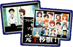 | The Screensavers, which protect old CRT displays from monitor burn, include such types as one which displays the faces of the characters in succession, one which uses the package illustrations, and one which plays the date event. There's even one with Super Deformed versions of Asuka, Shinji, and Rei on their way to school. |