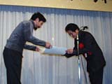 ![]() The toast that marked the end of the awards ceremony. At far right is author Kitagata Kenzo. |