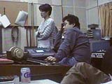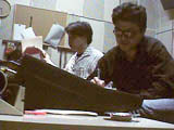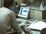 ![]() Recording Engineer Nagura and Effects Producer Kurahashi proceed to lay down the sound carefully, checking it against the images onscreen. |