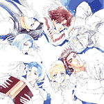 This cd has a combination of songs and drama. The 3rd cd contains 2 long tracks containing production outtakes, seiyuu/character introductions, interviews (?), & radio drama (?). Enjoyable drama tracks accompanied with amusing BGM. With the samples from disc 3, I've included the interviews of Hayami Sho (Julious), Shiozawa Kaneto (Clavis), & Koyasu Takehito (Olivie). |