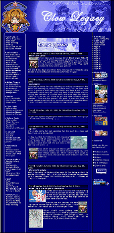 Well, there's a link to each individual page of the fan-fiction comic on every single page, which just clutters the sidebars. Not to mention "Sakura Avalon" and a few others have their own place on the side-bar as well. Ever thought that maybe people can find what they're looking for under a section called "CHARACTERS?" But it is easy to navigate, I'll grant them that.