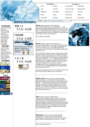 This site also happens to be well organized. The top navigation features take you to another page that has a more detailed selection of what you can expect in that section. Maybe it's just me, but I like categories as opposed to the lists that so many sites have going. I just find they not only look neater, but they make it easier to find what you're looking for. However, this site has misspellings galore. Now, this is not a moment for you to go and find every error I've ever made. What I'm referring to is misspellings of character names, as well as the introduction of a new word "Alfabetical." Oh yeah, and the "Introduction" link on the top navigation menu wasn't working. But that's the only broken link I encountered.